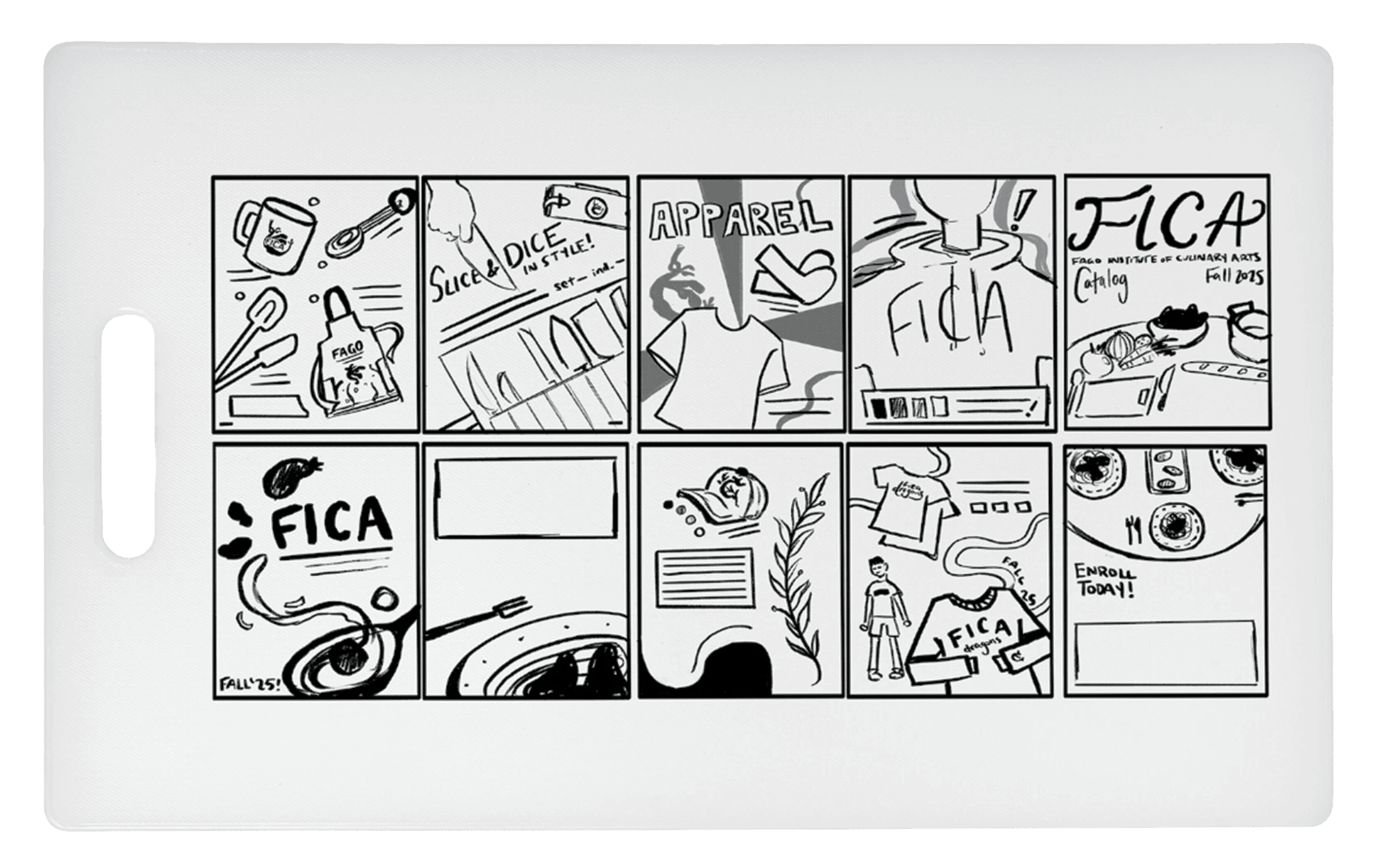 > FICA, the Fago Institute of Culinary Arts, is a culinary school concept located in Taranto, Italy. The client is looking to establish a strong, recognizable brand identity that showcases its values and characteristics, given that it is the inaugural year.